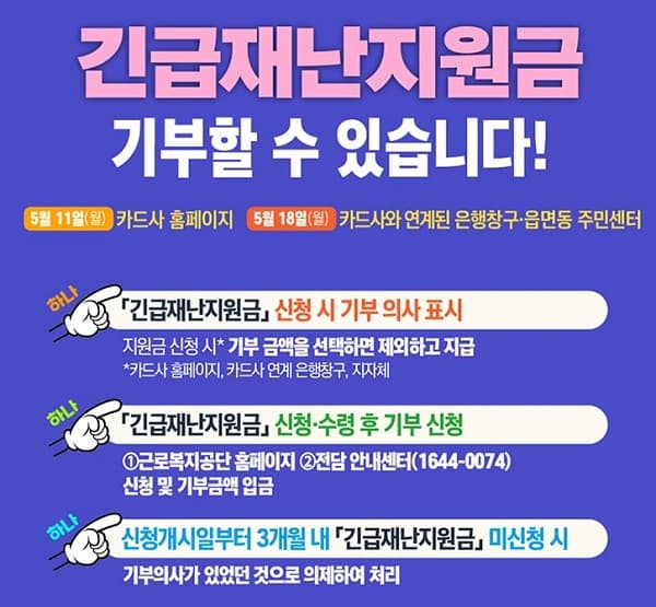 아래에서는 이러한 긴급재난지원금의 3가지 기부 방법에 관하여 설명드리고자 합니다.