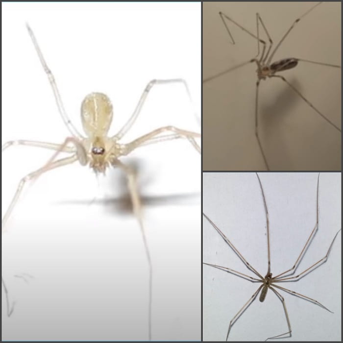보통 집이나 학교 또는 욕실 구성 등의 어두운 곳에서 주로 발견되는 거미입니다. 몸 길이는 5~10mm 정도로 작지만, 다리 길이는 최대 20mm로 다리가 훨씬 더 깁니다. 성체는 노란색에서 갈색을 띠며, 머리가슴 부분은 평평하고, 배는 긴 달걀 형태를 띠고 있습니다.