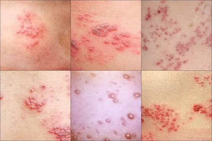 마치 데이고 난 뒤의 물집 또는 땀띠처럼 조그만 물집이나 반점 등이 생기게 됩니다. 수포와 발진은 점차 군집을 이루어 생기게 되며 며칠이 지나면 서로 섞여 혼탁하게 됩니다. 이러한 증상은 약 일주일 동안 지속됩니다.