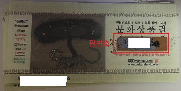 충전을 눌렀을 때 나오는 상품권 핀번호 스캔을 누르기 전에 상품권의 핀번호 부분에 있는 스크래치를 긁어서 벗겨냅니다.