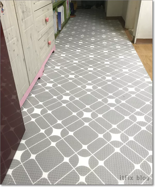 그래서 출입구쪽 거실 바닥부터 안방 입구까지 길게 보온 겸 충격, 소음 방지용 매트를 찾아봤습니다. 그래서 선택한 것이 잘라 쓰는 매트였는 데, 설치 후 3일이 지난 지금 매우 만족하고 있습니다.