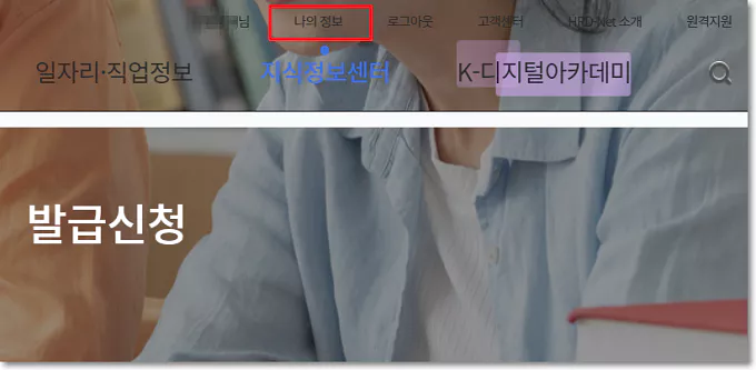 로그인한 다음 해당 페이지로 접속하게 되면 상단 메뉴에 '나의 정보'가 보이는 데, 나의 정보를 클릭합니다.