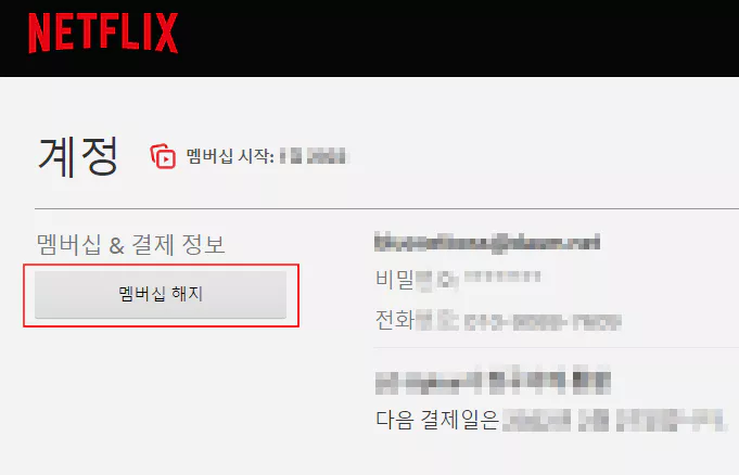 넷플릭스 계정을 PC에서 로그인한 다음 계정 설정 페이지에서 멤버십 해지 버튼을 눌러 기존 멤버십을 해지합니다.