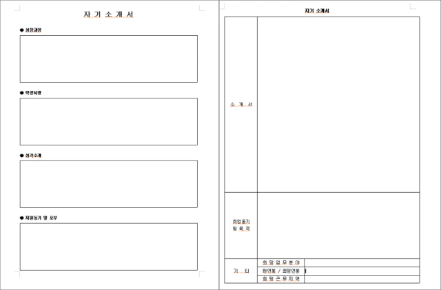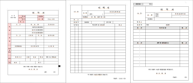 아래와 같은 3가지 표준 이력서 양식입니다.