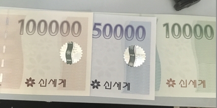 이마트 상품권의 경우에는 전면에 홀로그램이 있는 상품권과 없는 상품권이 있으며 홀로그램이 있는 상품권의 경우에만 현금화가 가능합니다. 보통 1만원권은 홀로그램이 없으며, 5만 원권 이상에만 홀로그램이 있는 것으로 알고 있습니다.