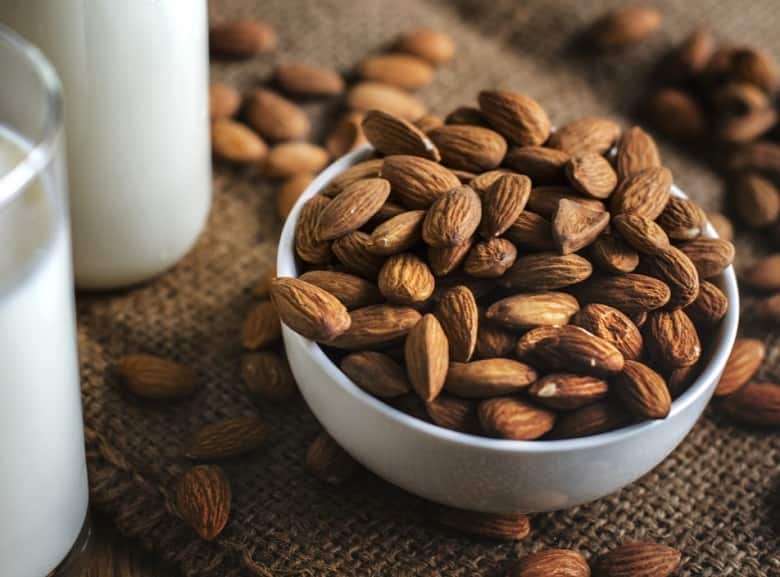아몬드에는 대량의 비타민 E 가 함유되어 있어 항산화 작용을 하며 기타 성분으로 망간, 마그네슘, 칼슘, 칼륨 및 섬유질이 포함되어 있습니다 . 아몬드는 적은 양을 먹는 다고 하더라도 그 자체로 심장 질환의 위험을 줄이는 작용을 하며, 고혈압을 예방하는 마그네슘이 풍부하며 체중 조절에도 도움이 됩니다.